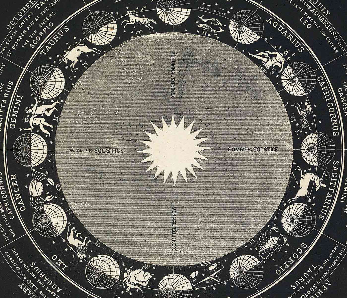 Asa Smith · 1850 · Detailed zodiac chart print pairing constellation emblems with crisp Victorian linework